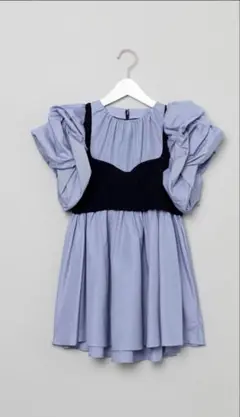 ハイネックとパフスリーブが特徴の黒のブラウス。