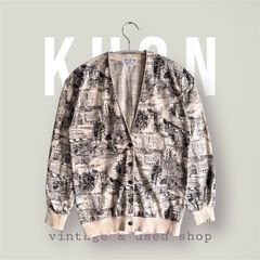 jennifer reed のカウチン風ざっくりカーディガンです。編み込みの模様がとても可愛いカーディガンです。ウール100%で比較的厚手ですので、アウターとして着用できると思います。全体的に目立つ汚れや破れなどダメージはありませんが、背中に、若干の汚れがあります。