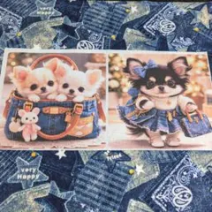 デニム風のハート柄生地、グレー色で手芸に最適。