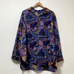 ヴィンテージ ビンテージ 総柄シャツ アート柄 抽象画 レトロ 古着 80s 90s 長袖シャツ ポリシャツ 派手 個性的 奇抜 カラフル マルチカラー メンズ レディース ユニセックス ブラウス トップス 羽織り カジュアル シャツ モード ストリート