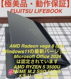 富士通 ノートパソコンRyzen3 16GB SSD512GB Win11