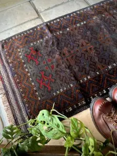 普段はオリジナルデザインのまま残るヴィンテージラグを中心に扱っていますが、こちらのような再生タイプは価格が抑えられるため、デザインのバランスの良いものを選んで時々出品しています。