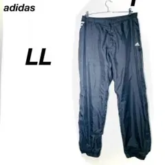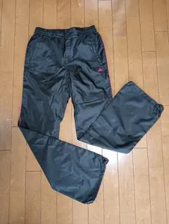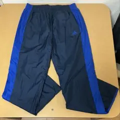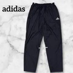 ウエストゴムで快適な着心地のadidasウインドブレーカーパンツ、3本ラインデザイン。