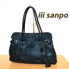 オーストリッチが特徴のブラックレザーショルダーバッグ。