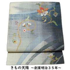 お色は、クリームの地色に淡いオレンジ、黄色、グリーン、ブルーのお色が縦に暈し染めの様に入っています。