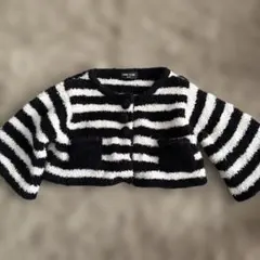 COMME CA ISMの黒いボタン付きカーディガン、フレアスリーブデザインでおしゃれ。
