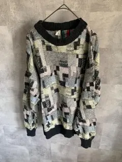 【4 Castella】Vネックニット 総柄 イタリア製 ウール混 メンズ L