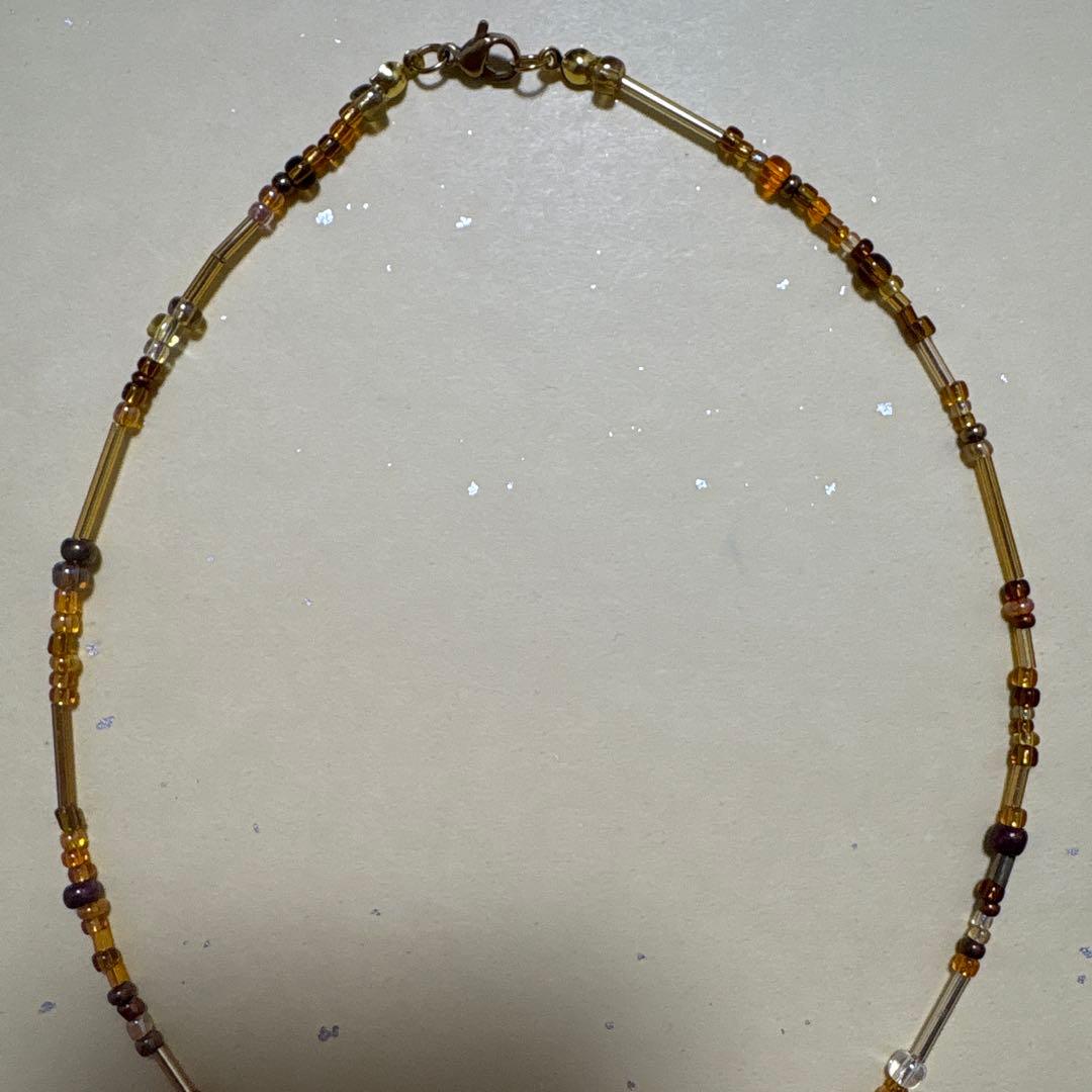 ブラウン系ビーズネックレス ハート型ペンダント付き