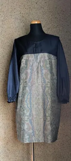 黒地に赤と金の花柄デザインのワンピース、長袖、同デザインのバッグ付き。