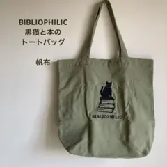 残り1点★ 猫 刺繍 エコバッグ トートバック モスグリーン ブラック