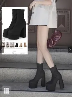 GRL 厚底ブーツ スクエアトゥチャンキーヒールショートブーツ zr1142
