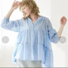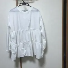 ホワイト 長袖 ティアードシャツ シアー ゆったり コットン100%