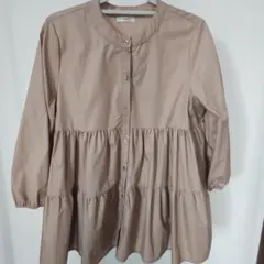 ティアードデザインのホワイト長袖シャツ、ラウンドネックで前開き