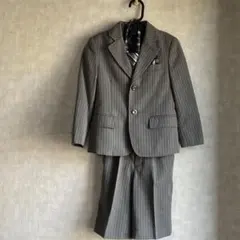 ネイビーのストライプデザインのフォーマルスーツ、ショートパンツ付き。