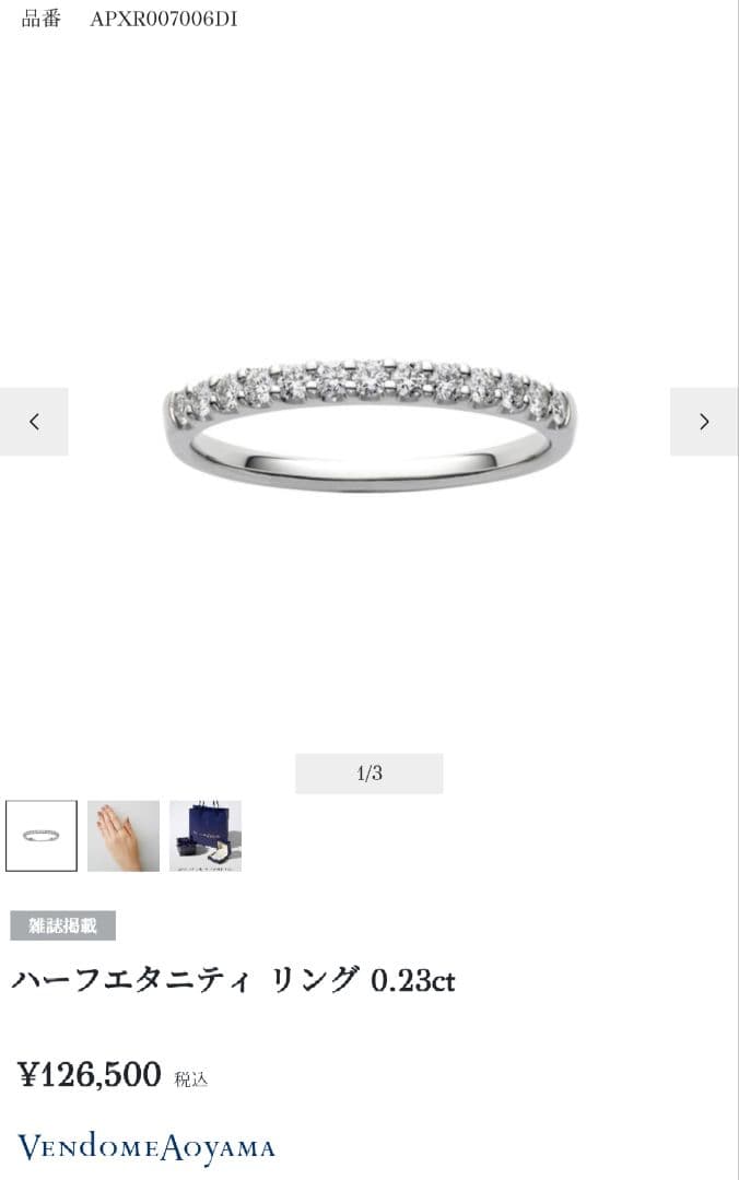 ヴァンドームアオヤマ の プラチナ ダイヤモンド ハーフエタニティリング です。