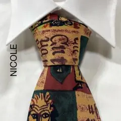 NICOLE ニコル オリーブグリーン 緑系 幾何学模様 総柄 シルク製ネクタイ