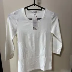 ユニクロ リブボーダーUネックTシャツ 5部袖 タイト ストレッチ 万能