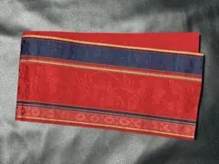 黒と金色のチェック柄の半幅帯、綿100%素材で、和装に最適です。