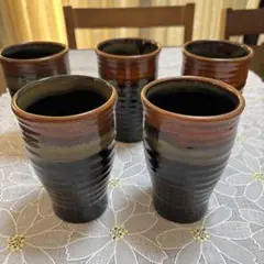 和柄★フクロウ、ブルー総柄デザイン。焼酎湯呑みセット