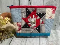 ハンドメイド ペンケース パッチワーク 赤系 20㎝ファスナー