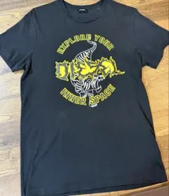 DIESELのロゴが際立つカジュアルなブラックTシャツ。