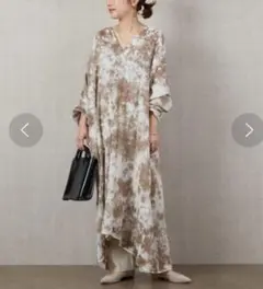 花柄デザインの長袖ロングワンピース、FREEサイズ。