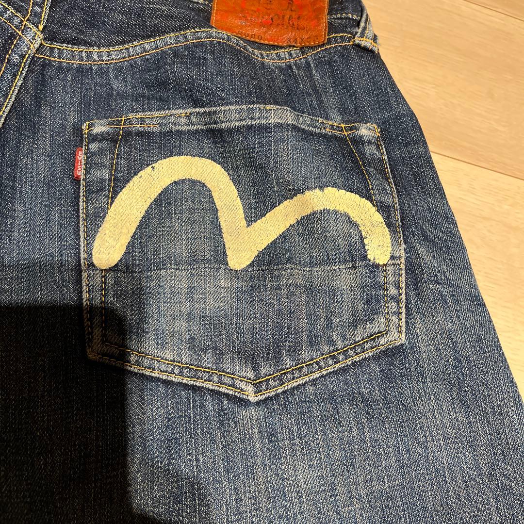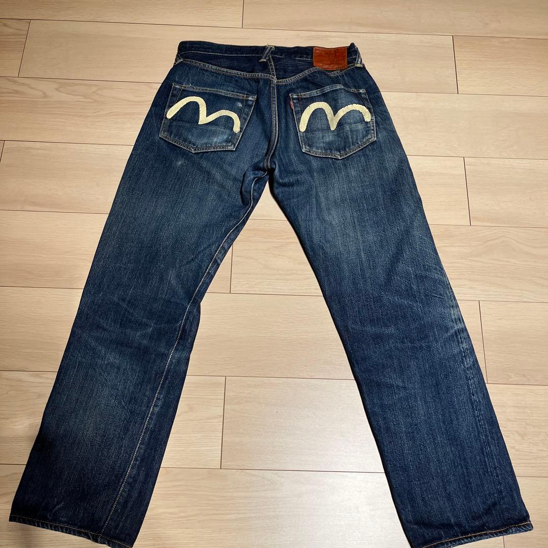 15年くらい前に直営店で購入しリジットから育てました。左バックポケットに1cm程のほころび穴があります。太めの2001より濃淡がはっきり分かる色落ちです。当方173cmで68kgくらいの時にジャストサイズで購入しました。長くクローゼットで保管していました。