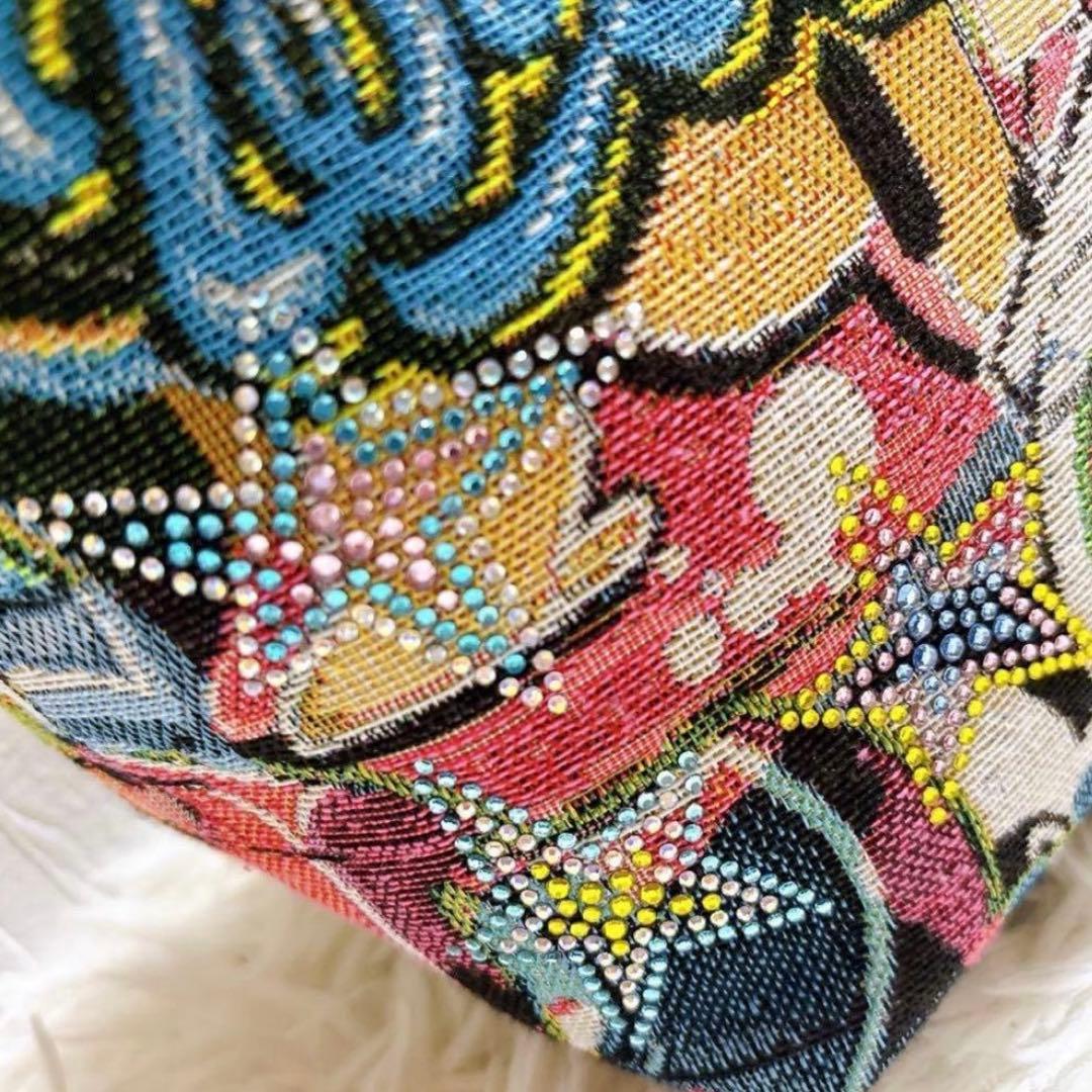 鮮やかなグラフィティ柄と、キラキラと輝くビジュー装飾がとてもステキなアイテムです。