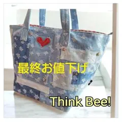 美品 シンクビー! トートバッグ ハンドバッグ ビジュー デニム生地 保存袋付き
