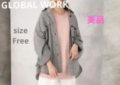 美品 GLOBAL WORK シャツ カーキ ミリタリーシャツ クロップド丈