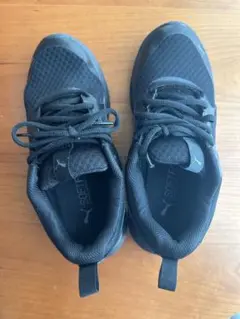 メッシュ素材のブラックスニーカー、軽量で通気性に優れています。