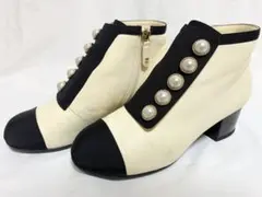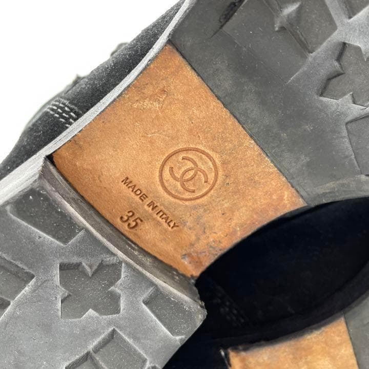 【稀少】シャネル レースアップ ショートブーツ 黒 スエード ココマーク 35