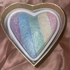 レインボーカラーのハイライトパウダー、ハート型デザイン。