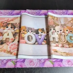 未使用 可愛い猫ちゃんパネル生地4枚&薔薇柄生地です。