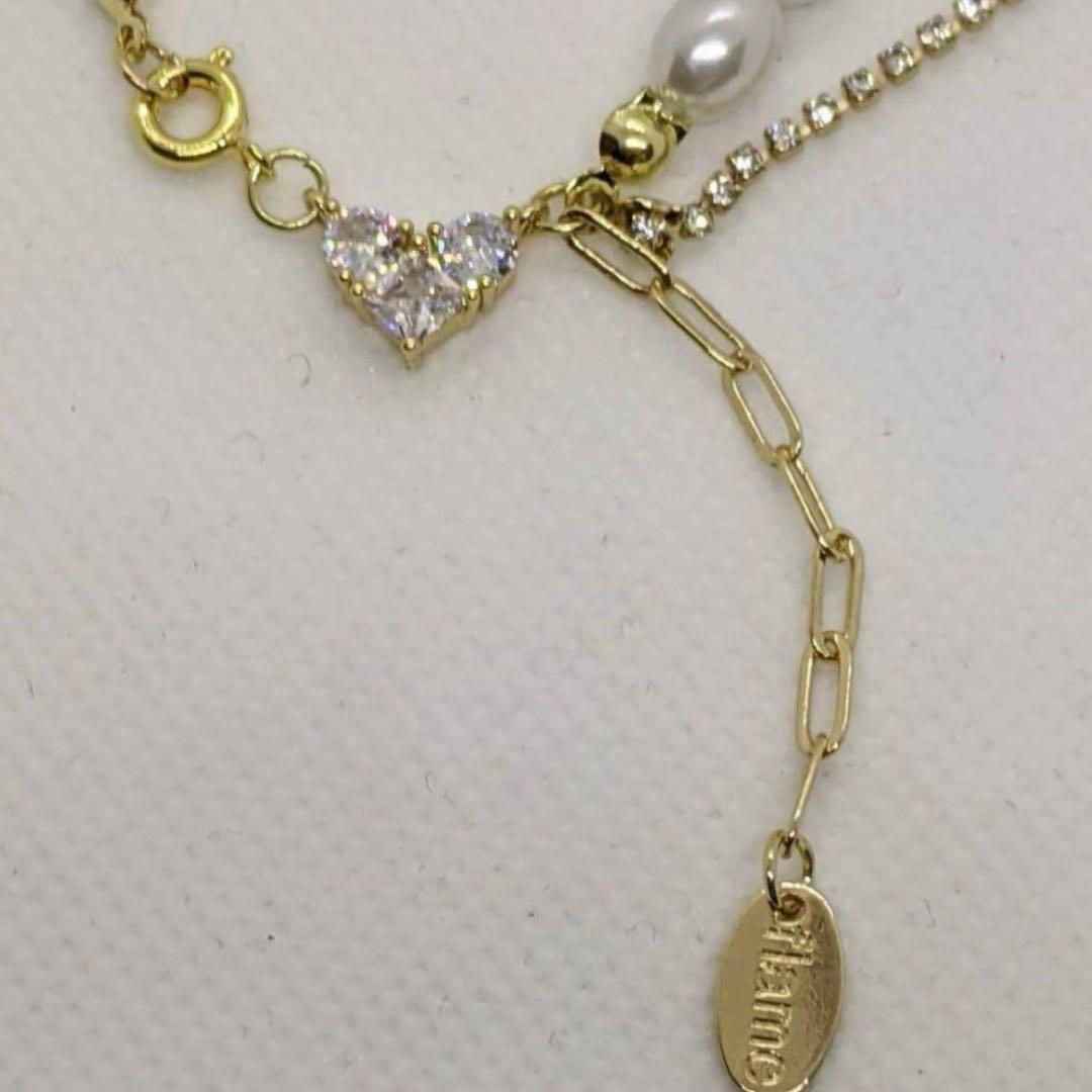 韓国風 パール付きネックレス ラインストーン付き チョーカー 鎖骨ネックレス A