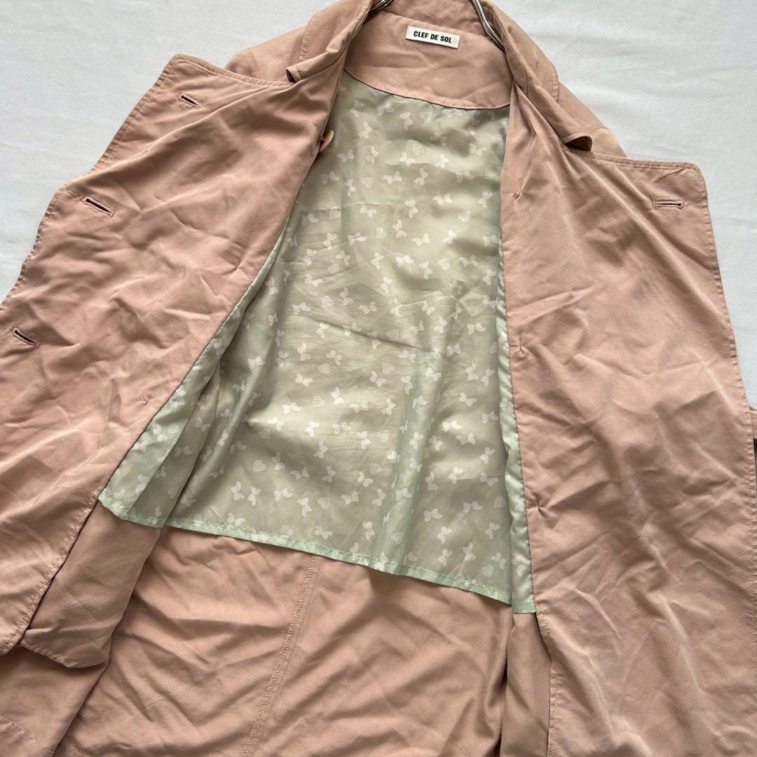 クレドソル トレンチコート ダブルブレスト リボンベルト ピンクベージュ