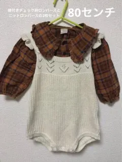 アイボリー チェック柄 ロンパース