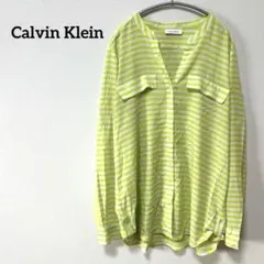Calvin Klein カルバンクライン L ホワイト 長袖レオパード襟シャツ