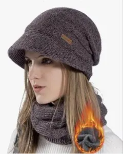 耳あて付き ニットキャップ & ネックウォーマー ホワイト 2点セット 防寒 冬