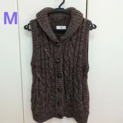 新品タグ付r.p.sケーブル編みニットベストアイボリー 背中スリットリボンM