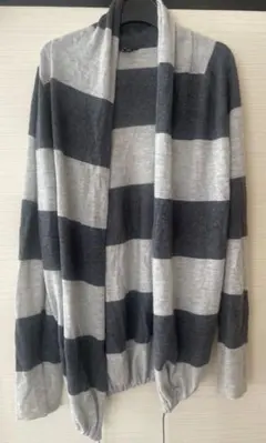 satoko paris グレー系ボーダー織り ニットカーディガン