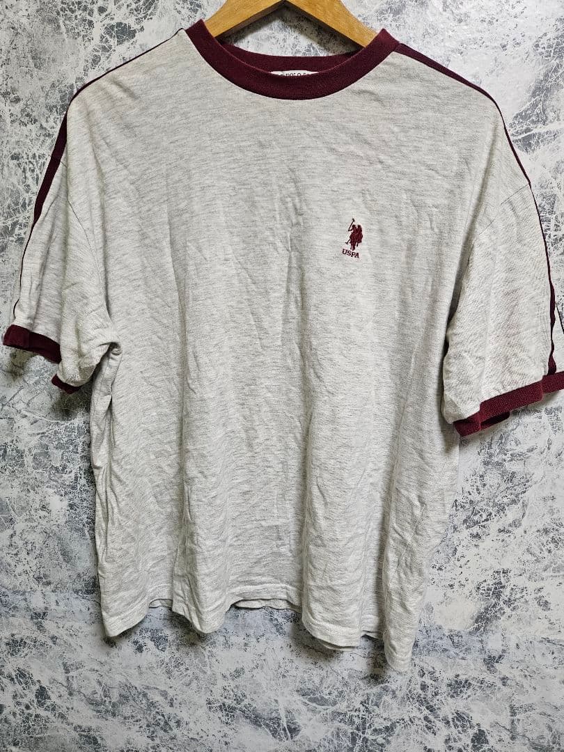 #USPOLOASSN#ユーエスポロアッスン#ポロ#Tシャツ#リンガーTシャツ#半袖#ロゴ刺繍#グレー#ボルドー#カジュアル#Mサイズ