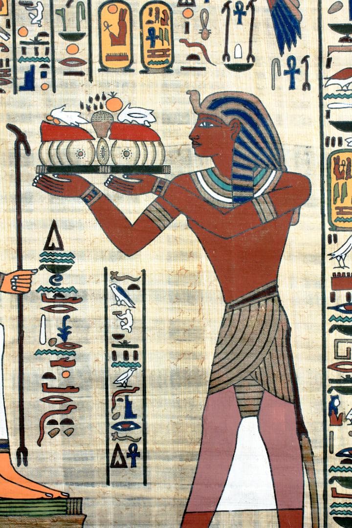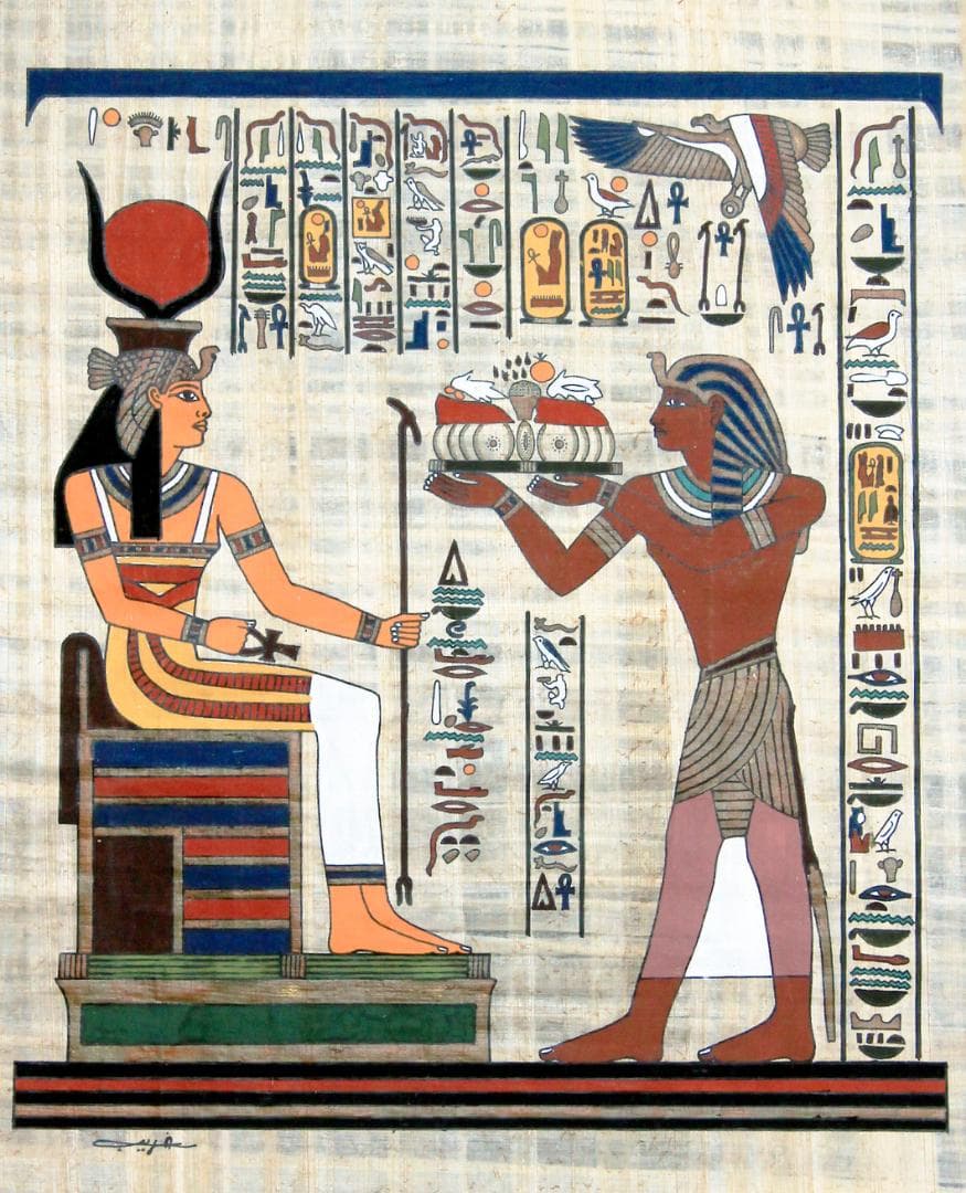エジプト パピルス パステル画 「太陽神ラーに献酒するラムセス2世」