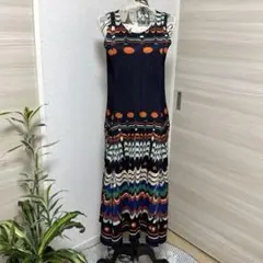 【美品】プリーツプリーズ Aライン エンボス加工 マキシ丈 ワンピース 3 L