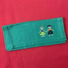 Tシャツヤーンで編んだバイカラーのAirPodsケース。SUNUオリジナル缶バッジ付きです。