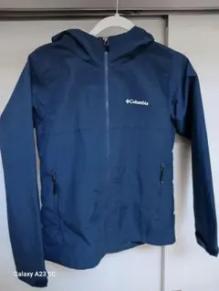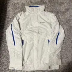 ベージュのフルジップジャケット、サイドジッパーポケット付きで、アウトドアに最適。