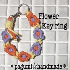 アイボリーのコットン製マクラメ編みキーリングです!