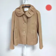 柔らかい生地のノーカラーグレージャケット、フロントボタン付きでサイドポケットあり。
