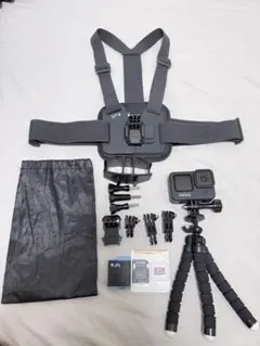 GoPro 本体、防水ケース、通常ケース、三脚、バッテリー×2のセットになります。