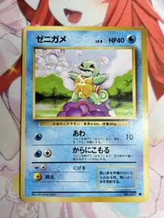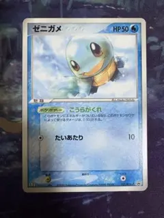 ゼニガメのトレーディングカードで、HP60、技「ロケットずつき」で20ダメージを与えます。